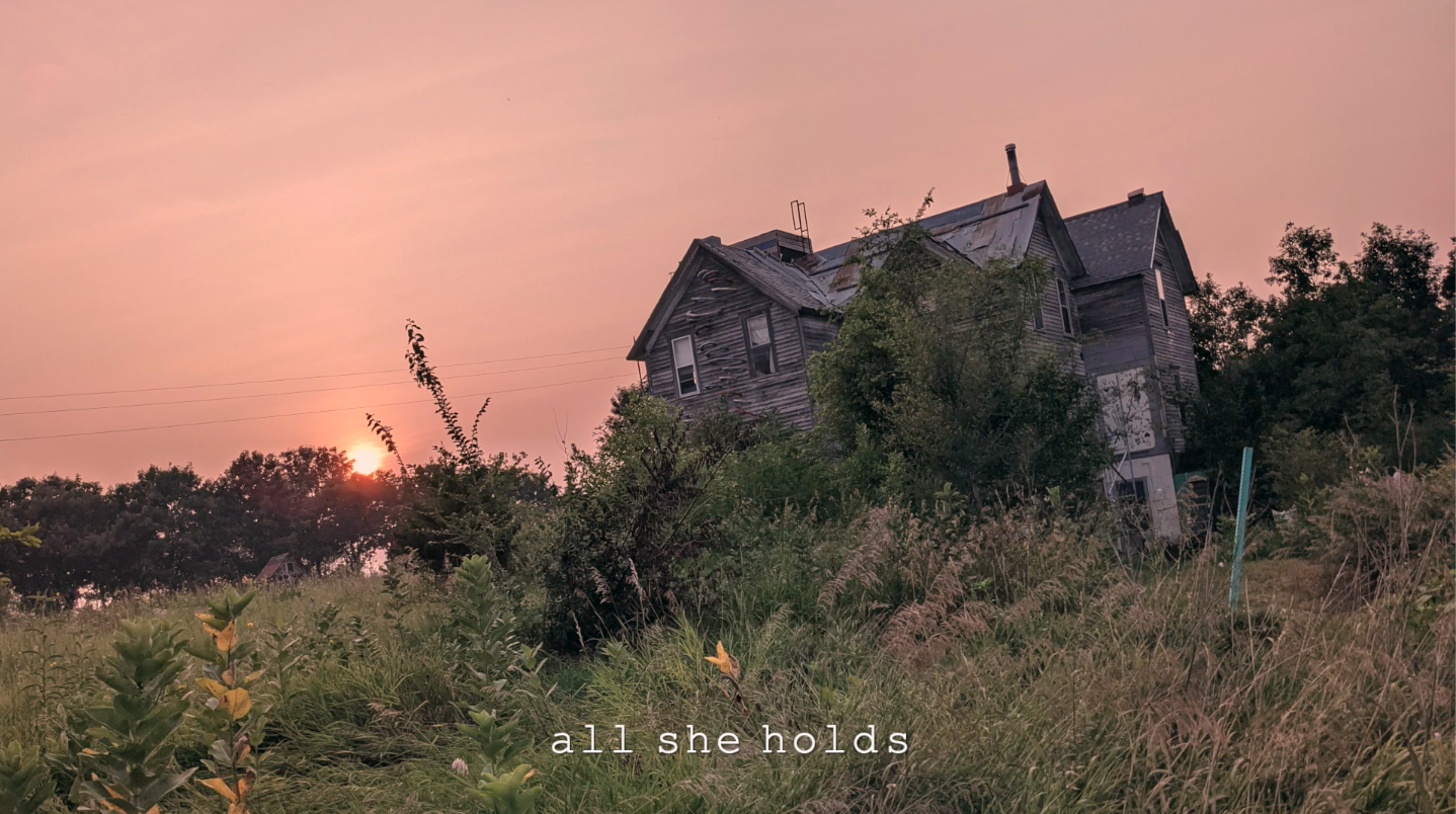 all she holds was created in residence at Art Farm, Nebraska. Highly influenced by the surreal experience of living and working in “Victoria”, a 100+ year old house on the farm, this film is a visual collage investigating memory, lived history, sensation, and spirit of place.